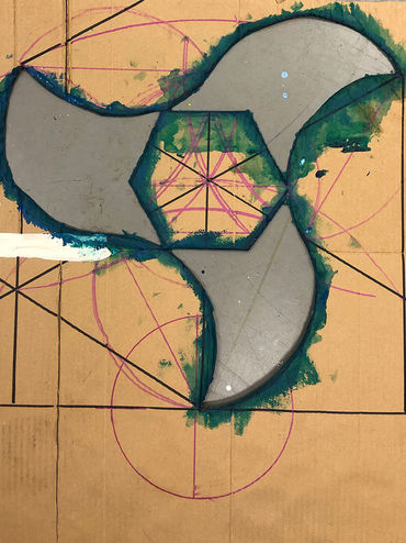 Naast het denken en praten zijn we ook simpelweg heel veel bezig geweest. We gebruikten de grond als werkplek en allerlei materialen als canvas. Vloerbedekking, papier, slaapzakken, je kan het zo gek niet bedenken of het werd gebruikt om een onverwachte plek in te nemen. We bespraken en gebruikten technieken van stencils tot geometrie en hadden aan het eind van elke les gerust nog een paar uur door kunnen gaan. Hopelijk kunnen we in volgende cursussen ook fysiek wat dichter bij elkaar komen, maar het was ook bijzonder om te zien dat je ook met gepaste afstand heel nauw samen kan werken.”
